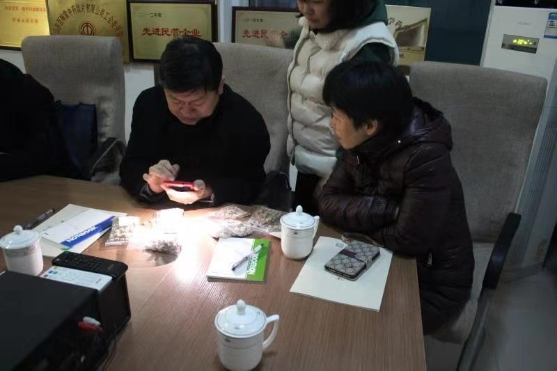 王主任一行觀看了公司宣傳片,聽取了崔總對(duì)于中藥飲片目前發(fā)展的現(xiàn)狀和公司科研開發(fā)情況的介紹,隨后參觀了發(fā)酵、發(fā)芽車間。期間詳細(xì)了解了中藥發(fā)酵的情況和六神曲產(chǎn)品,并對(duì)六神曲利用現(xiàn)代技術(shù)發(fā)酵和標(biāo)準(zhǔn)制定提出了設(shè)想。