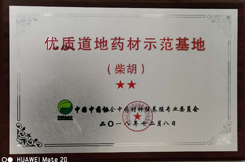中國中藥協會是全國唯一進行優(yōu)質道地藥材示范基地評審的專業(yè)機構。在大會上,為獲得“優(yōu)質道地藥材示范基地”的單位舉行了授牌儀式。我公司申報的柴胡種植基地在眾多競爭對手中成功突圍,獲得認證專家的高度認可,榮獲“優(yōu)質道地藥材示范基地”殊榮。